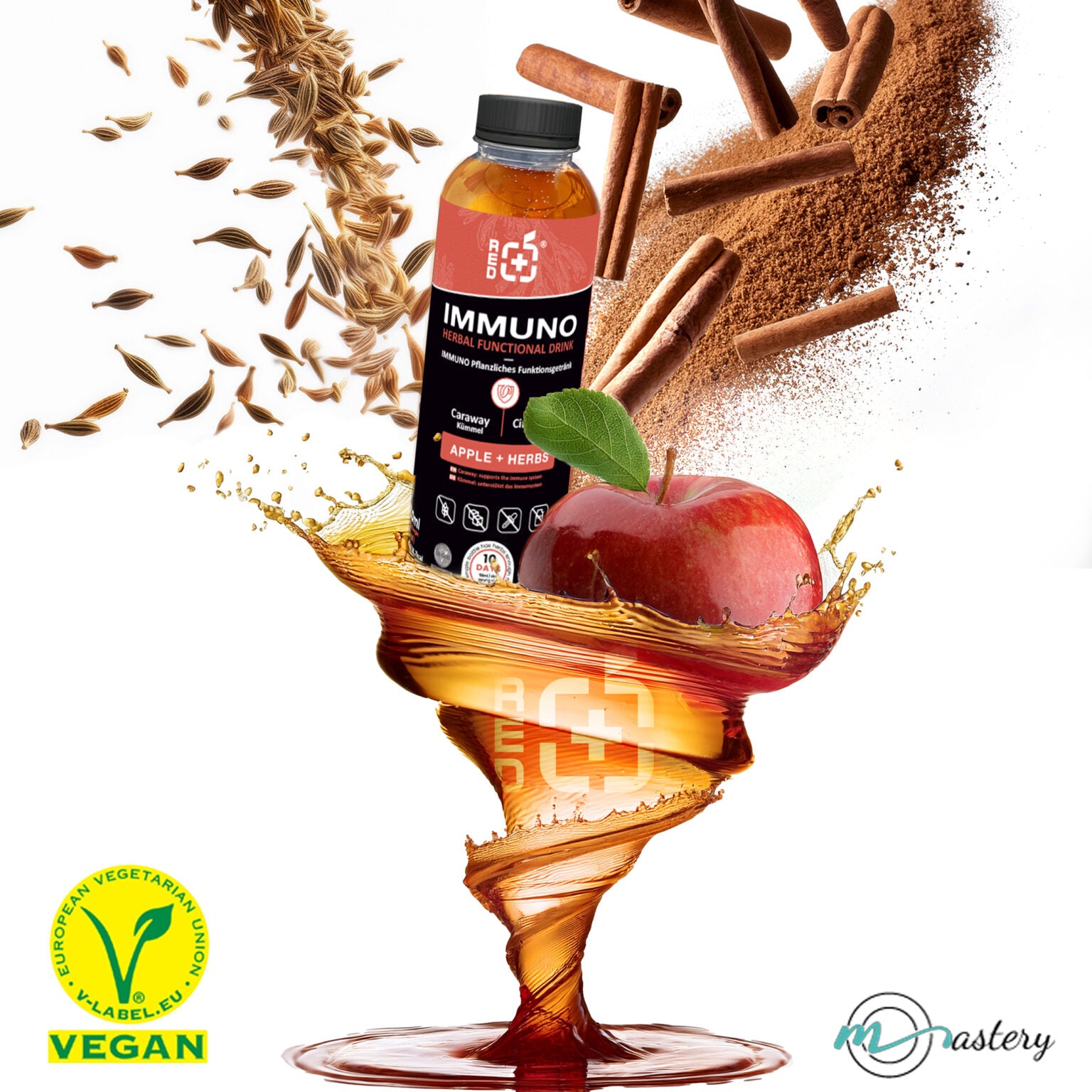 RedPower Immuno är en naturlig örtdryck med fiberrik äppeljuice och örter som kan stödja immunförsvarets funktion. Den kan stärka kroppens motståndskraft och hjälpa i kampen mot infektioner. Drycken bidrar till ett fiber­rikt kostintag och kan stödja en hälsosam livsstil. 500ml.