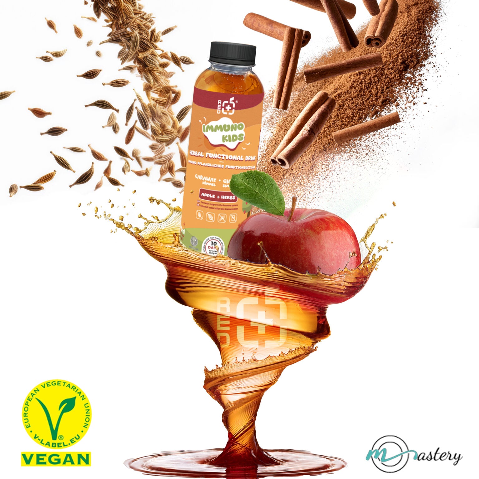 RedPower Immuno Kids är en dryck där varje klunk är tillverkad av noggrant utvalda äpplen odlade i Ungern och örter, särskilt utvecklad för att stödja ditt barns immunförsvar. Denna 100 % veganska dryck innehåller naturliga ingredienser som kummin, vars antivirala och antibakteriella egenskaper kan stärka barnets kropp i kampen mot infektioner. 500ml